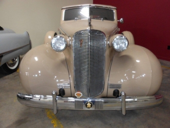 | 1937 CADILLAC 37-60 SERIES FISHER CONVERTIBLE, Tucson Tan/Brown leather seats/ Tan top, Red wheels, 126 “ Wheel base, rumble seat, V8, heater, radio with under dash speaker, side mounts. Mechanical restoration completed before 2009 and exterior and interior finished in 2010. This 100 point car has won many first place awards including an AACA at Hershey, Pennsylvania. |