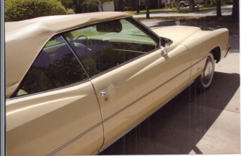 1973 CADILLAC ELDORADO CONVERTIBLE, Harvest Yellow with matching leather and top, a/m f/m stereo radio, automatic climate control, cruise control, guidematic headlamp control, twilight sentinel, remote control trunk, rear turn signal and stop light indicator, right hand outside remote control rear view mirror, tilt and telescope steering wheel, rear window defogger, illuminated passenger vanity mirror, left hand outside mirror thermometer, electric windows, seats and door locks, parade boot.