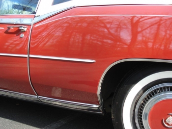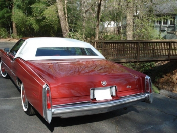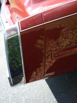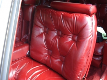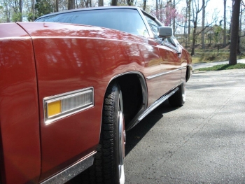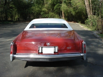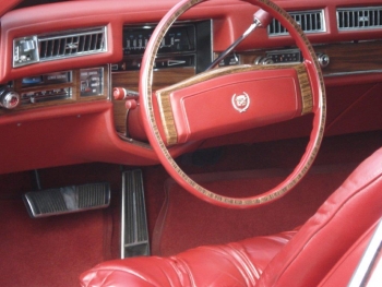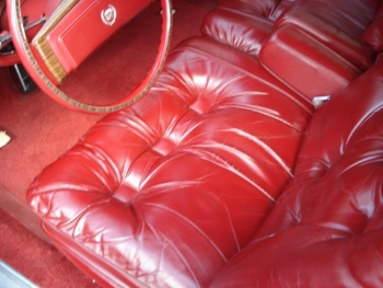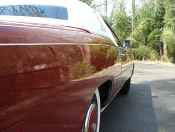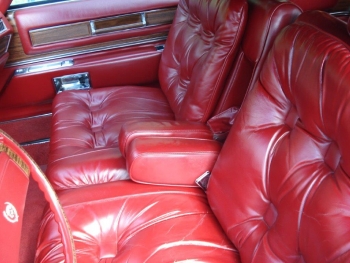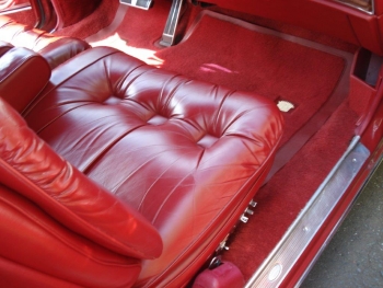 This 1978 Biarritz Coupe is Carmine red with dual 6 way 50-50 soft pillow leather red seats. The interior is matching red: red dash and carpets. It has a white vinyl Landau roof. The white wall tires are New. Features found in this Biarritz include a rear window defogger, twilight sentinel, new white wall tires, tilt wheel, AM/FM stereo, tape player radio, cruise control, automatic climate control, electronic level control, power driver and passenger seats, remote control trunk, guidematic headlamp, illuminated vanity visor mirrors, controlled cycle wipers, illuminated entry system, illuminated left hand outside mirror thermometer, trumpet horn, fuel monitor, and a host of standard equipment, and power windows.
