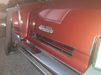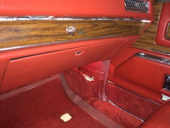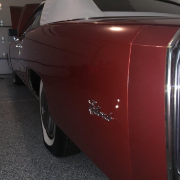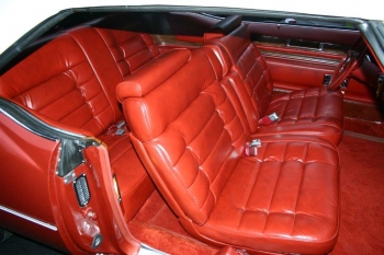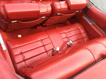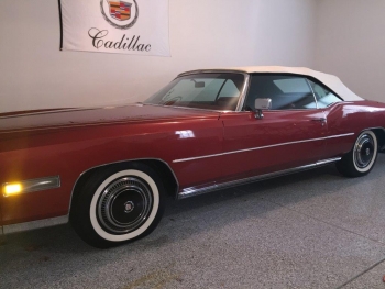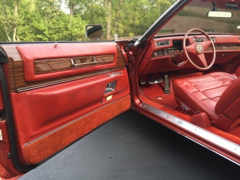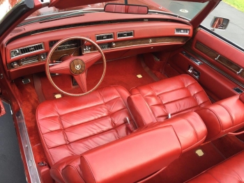 CADILLAC CREAM PUFF: 1976 Eldorado Convertible, Firethorn, 50-50 soft red leather 6 way power seats, white top. AM/FM 8 track radio, cruise control, guidematic headlamp control, rear window defogger, automatic climate control, remote control trunk, t & t wheel, undercoat since new, remote control rear view mirrors, trumpet horn, dual 4- wheel disc power brakes, and a host of other standard equipment. New battery, flawless show car condition, meticulously maintained, no snow, smoke, 405 original miles, window sticker, owner’s manual, rides impeccably, # 1 vehicle condition, one of the finest in the country, a real time capsule.