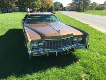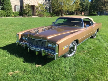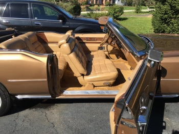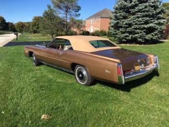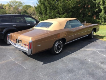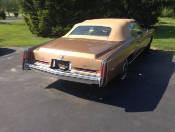 CADILLAC: 1976 Cadillac Eldorado Convertible, Pueblo Beige Metallic, Buckskin 6 way 50-50 soft leather seats and top, a/m f/m radio with 8 track, automatic climate control, remote control trunk, tilt and telescopic wheel, cruise control, soft boot, new fender extensions, plugs, wires, injectors, antenna, both fuel pumps, all fluids changed, ecu unit rebuilt, gas tank boiled out, one brake caliper replaced.