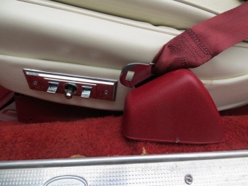 This 1978 Biarritz Coupe is Carmine red with dual 6 way 50-50 soft pillow leather red seats.  The interior is matching red: red dash and carpets.  It has a white vinyl Landau roof.  The white wall tires are New.   Features found in this Biarritz  include a rear window defogger, twilight sentinel, new white wall tires, tilt wheel, AM/FM stereo, tape player radio, cruise control, automatic climate control, electronic level control, power driver and passenger seats, remote control trunk, guidematic headlamp, illuminated vanity visor mirrors, controlled cycle wipers, illuminated entry system, illuminated left hand outside mirror thermometer, trumpet horn, fuel monitor, and a host of standard equipment, and power windows.