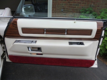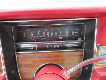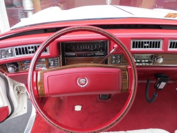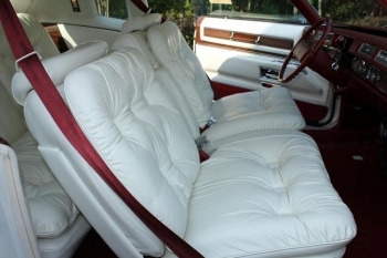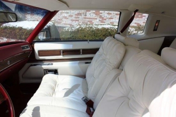 Landau roof.  The interior has red dash and carpets, rear window defogger, twilight sentinel, guidematic headlamp control, tilt and telescope wheel, remote control trunk, controlled cycle wiper  system, a/m f/m/stereo/ radio/tape player with citizens band, cruise control, trumpet horn, fuel monitor, illuminated entry system, automatic climate control, electronic level control.