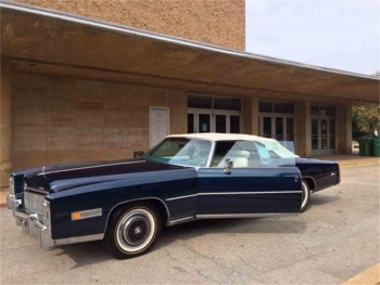 CADILLAC: 1976 CADILLAC ELDORADO CONVERTIBLE, Commodore blue, 50-50, six way white leather seats, matching top, a/m f/m stereo 8 track radio, automatic climate control, tilt wheel, parade boot, rear window defroster, outside left hand thermometer, cruise control, twilight sentinel, passenger illuminated vanity mirror, controlled wiper, remote trunk control, power passenger recliner, window sticker, front and rear fender fillers replaced with ABS plastic, 88 original owner miles